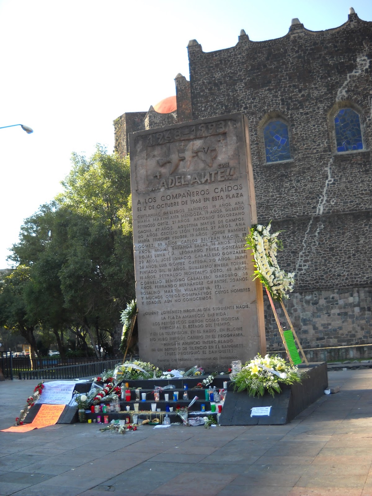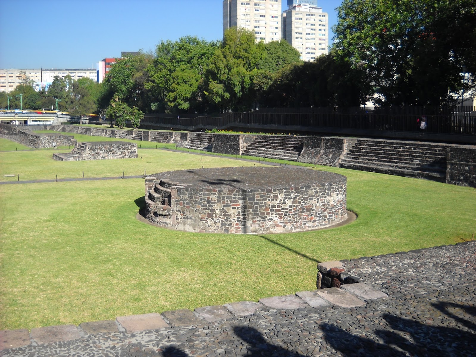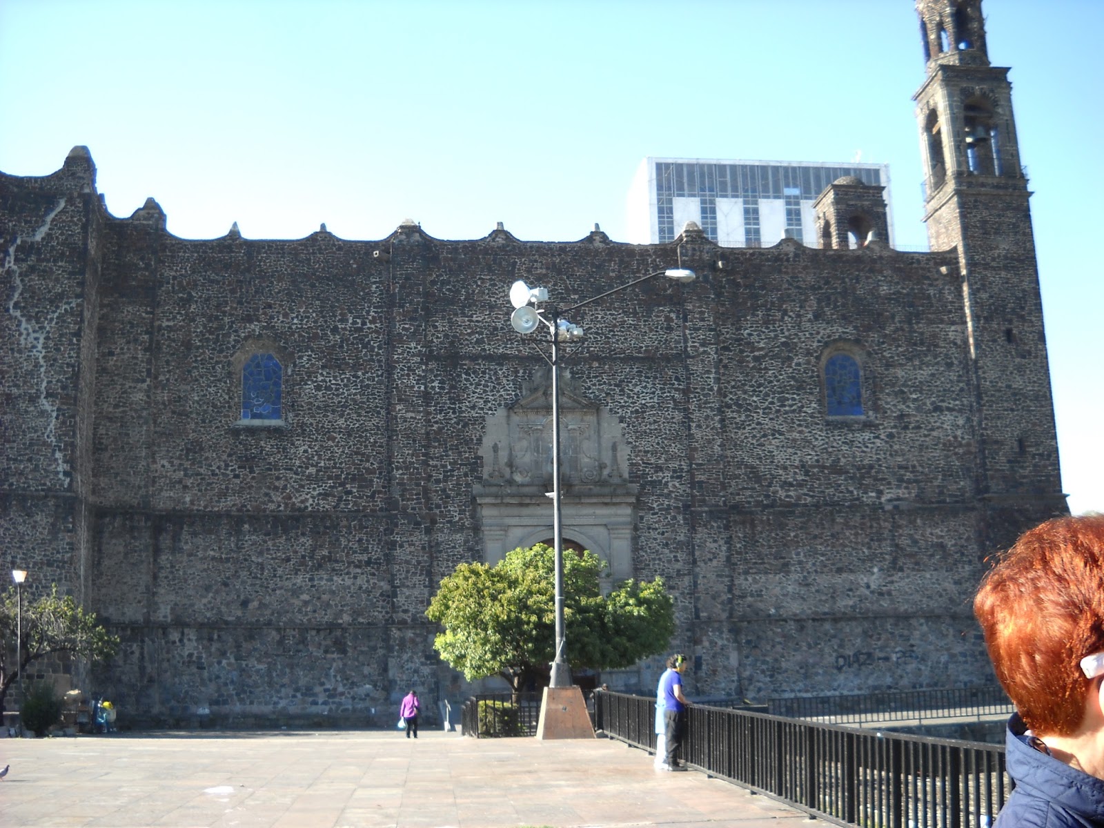 Dzień rozpoczynamy od wizyty na Placu Trzech Kultur (Plaza de les Tres Culturas). Nazwa pochodzi od tego, że kultura współczesnego Meksyku narodziła się z przemieszania dwóch wcześniejszych kultur – prekolumbijskiej i kolonialnej. Pośrodku Placu znajdują się ruiny Tlatelolco – największego targu w Dolinie Meksyku i ostatniej twierdzy Azteków walczących z Hiszpanami. Tablica z napisem ”Nie była to klęska ani zwycięstwo, ale bolesne narodziny mieszanej rasy, która stanowi o dzisiejszym Meksyku”. Obok znajduje się kościół Iglesia de Santiago, zbudowany w 1524 roku (przebudowany w XVII wieku) oraz siedziba Ministerstwa Spraw Zagranicznych. Na Placu znajduje się również pomnik poświęcony ofiarom masakry setek ludzi, którzy zginęli 2-go października 1968 roku podczas demonstracji przeciwko polityce społecznej i edukacyjnej rządu.