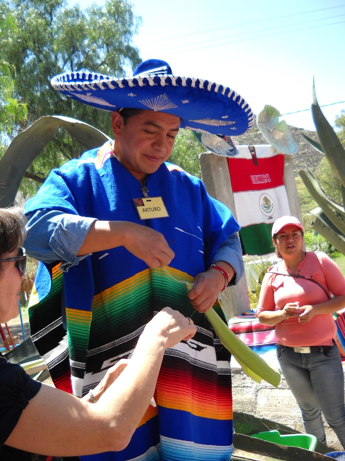 Arturo demonstruje nam wyrabianie nici i igieł z agawy