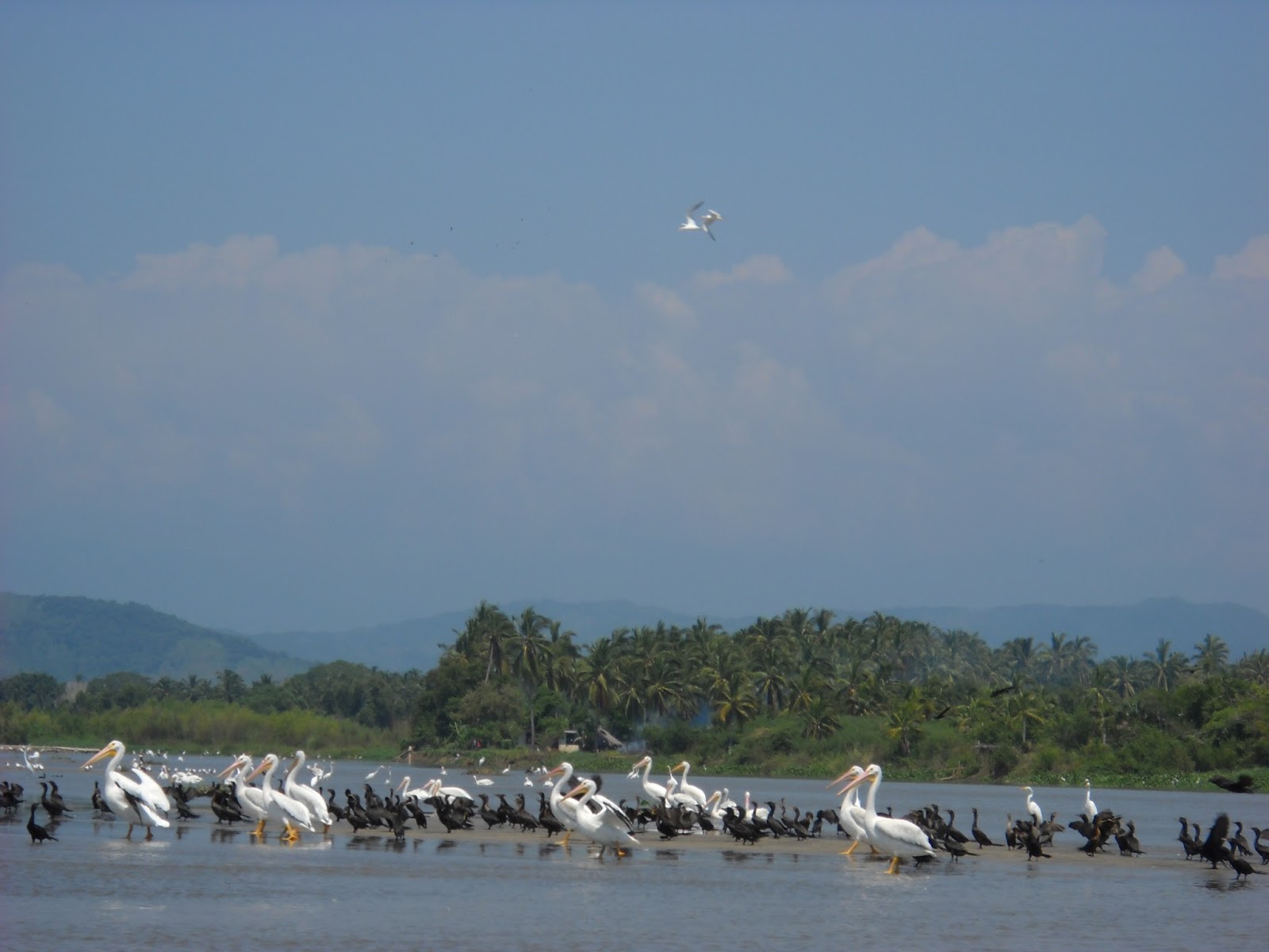 Laguna Coyuca. Sztorm na oceanie spowodował wtargnięcie słonej wody do laguny. Nie wszystkie ryby to przeżyły, dlatego ptactwo miało wyżerkę.