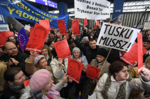 Co trzeba bowiem mieć w tych łepetynach, aby swojego "Króla Europy", Donalda Tuska witać na Dworcu Centralnym w Warszawie jego portretami na czerwonym tle.