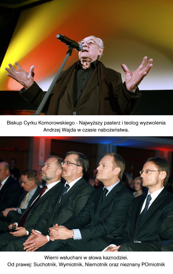 Występował Andrzej Wajda, jak zawsze posłuszny panującej władzy. Zahaczył o „wojnę domową” i nawoływał do „wojny o wszystko”. Taki to człowiek bojowy i rewolucyjny. Zatem „na barykady ludu roboczy... prowadzi Wajda”