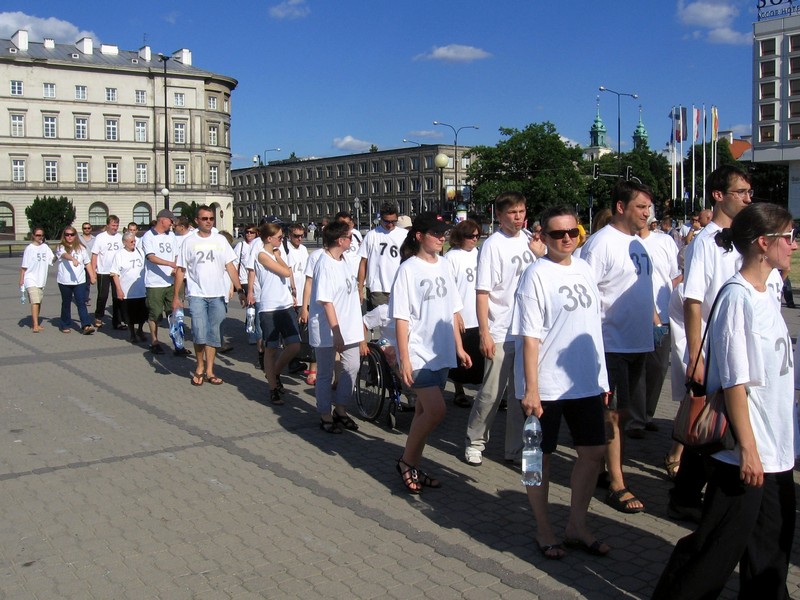 I to było moim zdaniem nie do końca przemyślane. Z poziomu ziemi nie było w ogóle widać zarysu samolotu. Mógł być widoczny jedynie z góry, a akurat na pl. Piłsudskiego i wokół niego żadnego wyższego punktu nie ma. Na początku osoby, które się zbierały na placu naturalnie zaczęły gromadzić się wzdłuż taśmy wyznaczającej obrys samolotu i przez to kształt tupolewa zaczynał być dobrze widoczny. Niestety, sami organizatorzy kazali "uwolnić obrys" samolotu. Zupełnie niepotrzebnie moim zdaniem. Oczywiście zwróciłem im na to uwagę, ale nie okazali się na tyle lotni, żeby z mojej wskazówki zrobić użytek.
