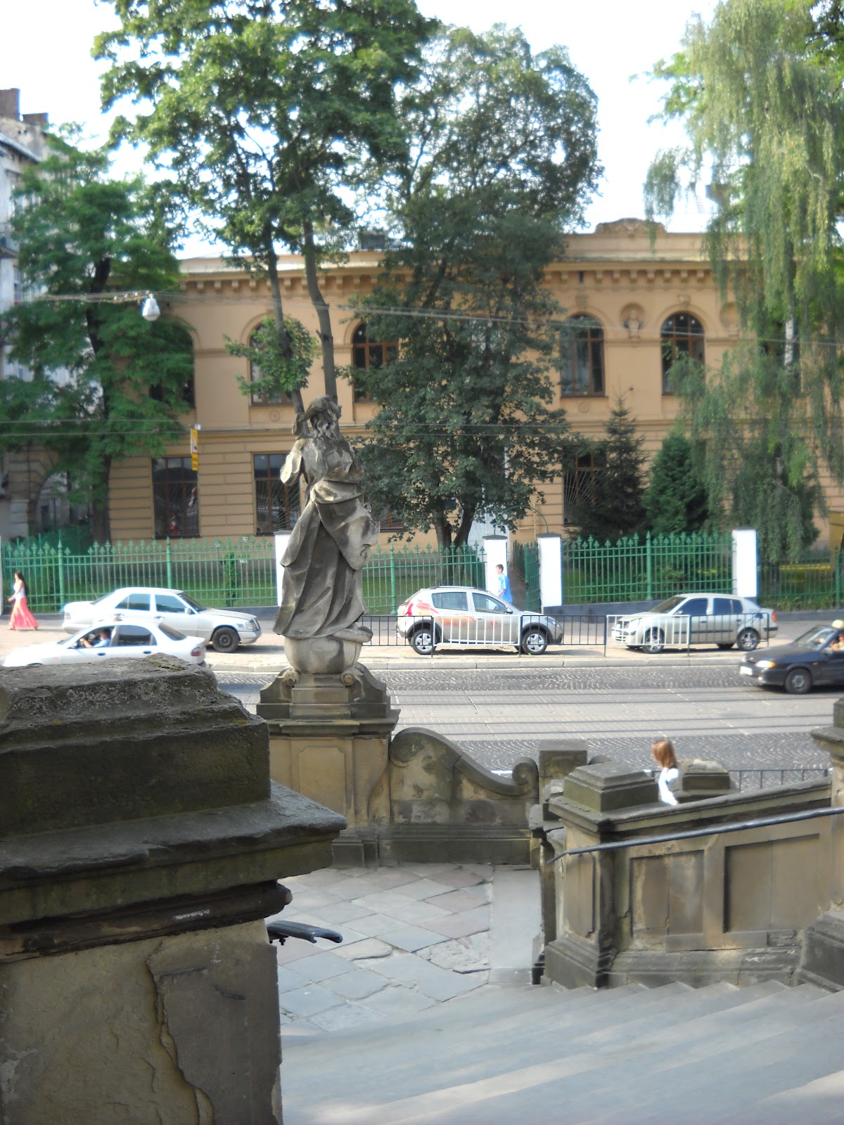 Widok od strony Kościoła Św. Antoniego na ulicę Łyczakowską. W głębi - posąg Tańczącej Madonny.