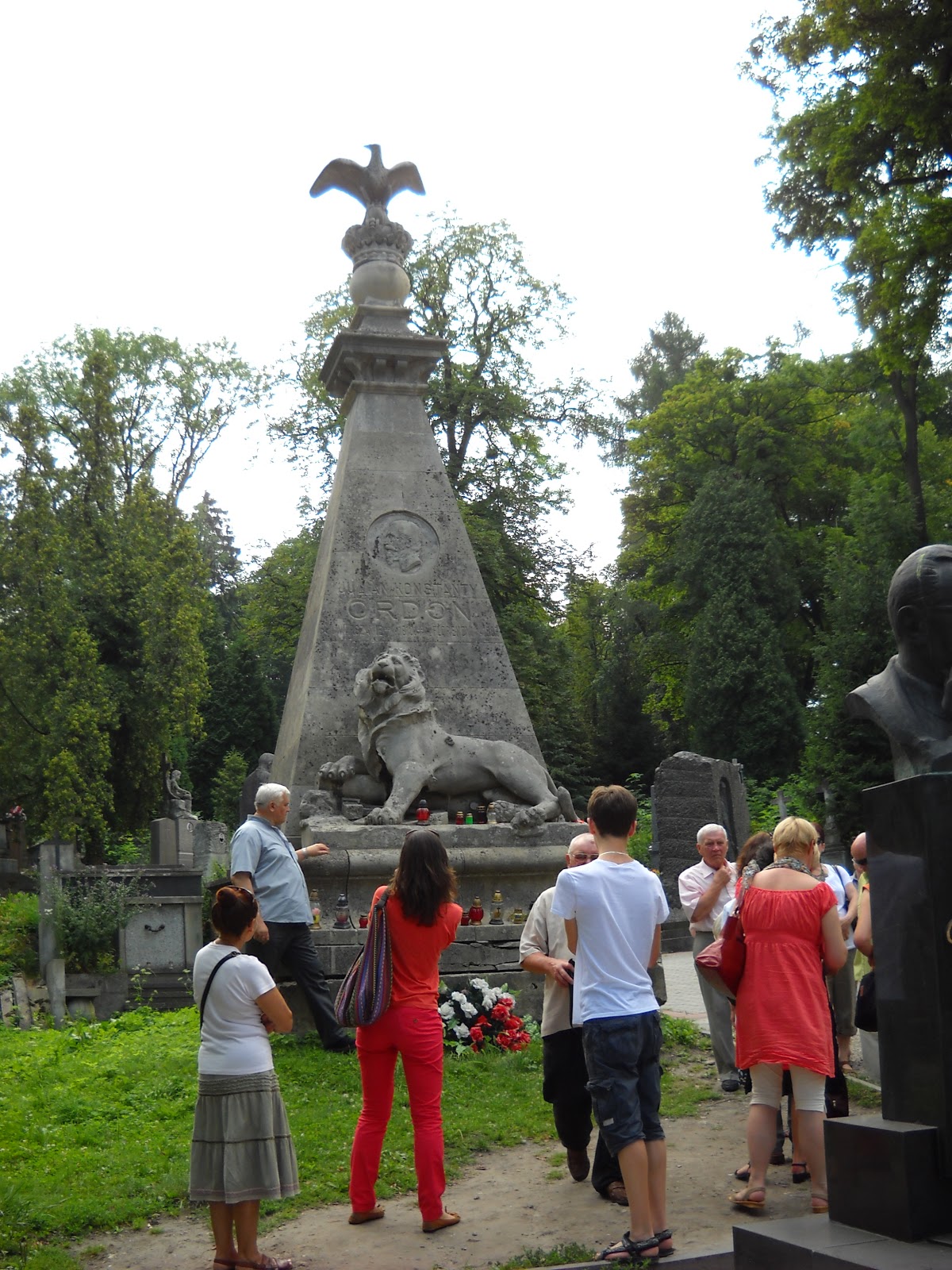 Cmentarz Łyczakowski Jedno z magicznych miejsc Lwowa, gdzie chyba najlepiej uwidoczniona jest historia miasta i jego mieszkańców w ciągu ostatnich 200 lat. Złożone losy miasta tak bliskiego nam, ale również Ukraińcom, Żydom, Ormianom i przedstawicielom innych nacji, którzy zamieszkawszy - pokochali je, zrywy powstańcze w czasach zaborów, czego niezbitym dowodem są kwatery powstańców listopadowych i styczniowych na cmentarzu, konflikty narodowościowe wieku XX, które doprowadziły do tragicznej walki dotychczasowych sąsiadów o władzę nad miastem i które po krwawych doświadczeniach II wojny światowej echem batalii o Cmentarz Orląt nie są obce i obecnym pokoleniom, chwalebne i tragiczne dzieje pokoleń naszych rodaków znalazły swoje odzwierciedlenie w grobach Łyczakowa. Miejsce jakże chwalebne, dumne a jednocześnie smutne i pełne nostalgii. Wspaniałe grobowce, rzeźby nagrobne, dostojne kaplice.W I połowie XIX w. w dekoracji nagrobków dominowała klasycystyczna rzeźba tak znanych mistrzów, jak Hartmann Witwer, Antoni i Jan Scimserowie, Paweł Eutele. Ich tradycje, noszące wyraźny wpływ szkół zachodnioeuropejskich w drugiej połowie XIX i na początku XX w. kontynuowali: Abel Maria Perier, Henryk Perier, Parys Filippi i dalej już wychowankowie miejscowych szkół i pracowni: Julian Markowski, Edmund Jaskólski, Tadeusz Barącz, rodzina Tyrowiczów, Witold Rawski i inni.Wędrowałam po alejkach cmentarnych, czytając nazwiska - w zdecydowanej większości polskie - znów nie wiedząc, że to jeden z panteonów polskiej chwały. Niedaleko od bramy wejściowej trafiłam na pierwsze znane nazwisko: Gabriela Zapolska, nieco dalej kolejne: Maria Konopnicka. Po drodze górujący obelisk z lwem, tak charakterystycznym dla tego miasta - czytam inskrypcję: Ordon. "Redutę Ordona" - tak wspaniały wiersz recytowało się w szkole; zdziwienie więc - Ordon tutaj? Niedaleko Konopnickiej Artur Grottger, tuż obok - Stefan Banach, w niedalekim sąsiedztwie znany lwowski architekt, którego dzieło - Operę Lwowską podziwiają kolejne pokolenia - Zygmunt Gorgolewski. Wracając do głównej alei napotykam grób - pomnik Seweryna Goszczyńskiego, w innym zaś miejscu historyka i pisarza - Władysława Bełzy..