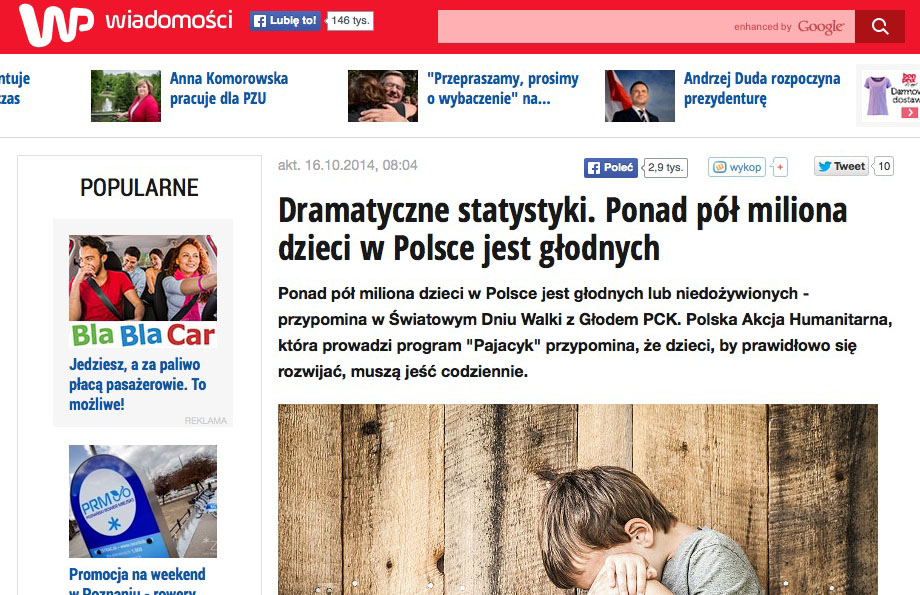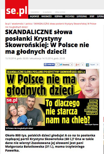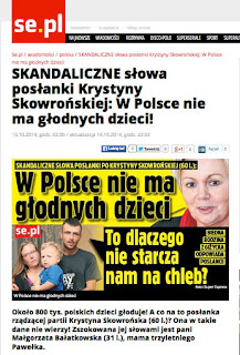 Nie tak dawno jeden z prominentnych babonów peowskich, posłanka Krystyna Skowrońska autorytatywnie stwierdziła: “W Polsce nie ma głodnych dzieci”!