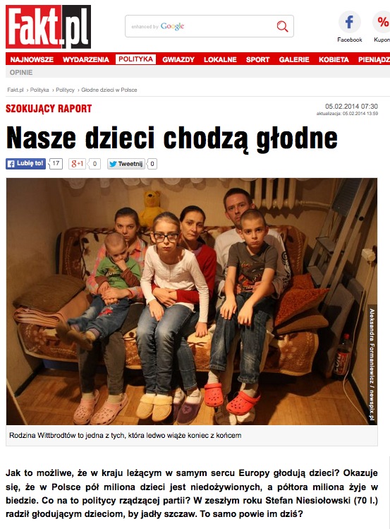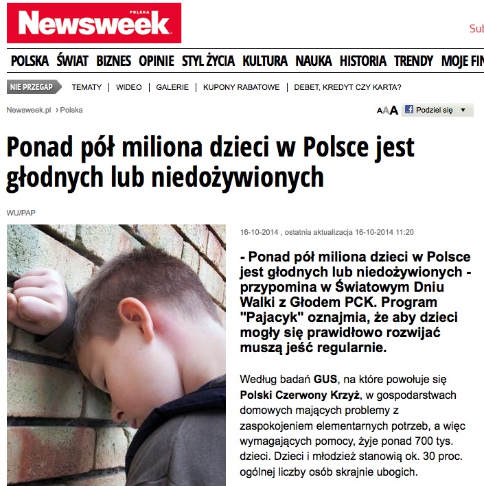 Widać teza o pulchncyh i zalegających leżaki z przejedzenia pociechach stała się platformianym dogmatem, którego nie był w stanie zburzyć nawet posiadający status “peowskiej biblii” Newsweek, pisząc, że “ponad pół miliona dzieci w Polsce, jest głodnych lub niedożywionych”.