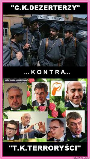 Z prostego powodu - sędzia Rzepliński biega po rynsztokach głównego ścieku medialnego i jak Częstochowy broni czerwcowej ustawy i prawidłowego wyboru. Równolegle do niego biegają po nich również „autorytety” Platformy O. ale... żaden – ani jeszcze do niedawna głośno gardłujący Budka, ani ostatnio prawie nocujący w studiach tv Zoll czy pyszczący Bodnar i ostatnia artyleria PO, sędzia Stępień, ani razu nawet się nie zająknął, że racja stoi po stronie sędziego TK, prof.Rzeplińskiego! Ani razu nie wystąpili razem z nim czy to u Olejnik, czy Rymanowskiego na przykład by pokazać, że stoją za prezesem TK i w ogóle za ustawą i za wyborem. Oni biegają tam tylko po to żeby dyżurnie i ustawowo plując na PiS, na prezydenta Dudę, postraszyć go Trybunałem Stanu, szantażować by zaprzysiągł trójkę pomazanych 8 października przez Platformę O. sędziów TK i terroryzować "wyrokiem" TK frajerów, oglądających, słuchających i czytających PO-wskie tuby propagandowe. Zero merytoryki, zero argumentów, zero solidarności z autorem „projektu Komorowskiego”!... As platformerskiej palestry, mec.Giertych założył nawet całą Fundację Obrony Demokracji by bronić ofiar antydemokratycznego kaczyzmo-pisioryzmu ale wątpię by prezes Rzepliński stał się kiedykolwiek jej podopiecznym bo tylko tajemnicą poliszynela jest, że on ofiarą owszem jest, ale niestety wyłącznie platfonsów "obywatelskich" w całej rozciągłości.