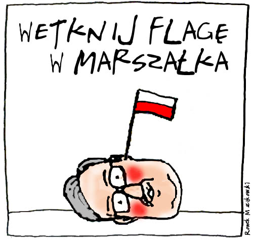Proponuję na uroczystość odsłonięcia tego nadruku na koszulkę, zaprosić do studia prócz Pana Raczkowskiego również Panów Wojewódzkiego oraz Stelmaszyka, którzy własnoręcznie wetkną flagę w marszałka Komorowskiego. By wszystko znalazło się na właściwym miejscu.